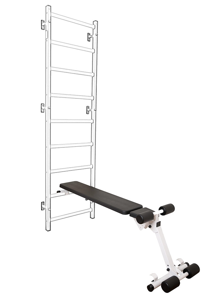 BenchK B310B / 710B / Lavica s podsedákom neobsahuje žiadny prvok vyrobený z ekologickej kože alebo špongie. Lavica je obojstranná so štyrmi valčekami pod kolenami. Celá opierka chrbta (navyše malé sedadlo, kolenné valce) je jednotný prvok vyrobený z integrovaného polyuretánu. Dosiahlo sa to vďaka použitiu moderných strojov a technológií. Kovová kostra je vyrobená z profilu 50 x 40 mm s hrúbkou 2 mm. Prášková farba - čierna podložka. Lavička vám umožňuje vykonávať rôzne brušné cvičenia, cvičenia pod uhlom s činkou alebo činkami. Lavica s podsedákom BCHK - B310B / 710B je vyrobená pre 9 priečkový model rebriny. Je možné ju kombinovať aj pri 8 priečkovej rebrine ale sklon vo vodorvonej polohe je mierne naklonený.