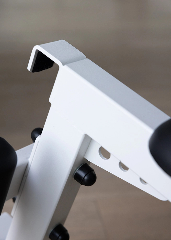 BenchK DB 310B / 710B / Bradlá s opierkou na chrbát majú 4 háčiky s hrúbkou 4 mm s plstenou podložkou, aby sa zabránilo poškriabaniu drevených priečok. Odnímateľný dizajn umožňuje ľahko zmeniť výšku. Lakťové opierky a operadlo sú vyrobené z integrovanej polyuretánovej peny na moderných strojoch, čo zaručuje odolnosť, ľahkú údržbu a estetický vzhľad. Bradlá sú založené na profile 50 × 40 mm s hrúbkou 2 mm. Príjemné na dotyk sú štyri protišmykové rukoväte. Vďaka modernej technológii použitej pri ich výrobe sú veľmi odolné a tvoria jednotný doplnok k celej štruktúre. Bradlá s operkou na chrbát / BCHK - DB 310B / 710B sú špeciálne navrhnuté pre modely rebrín Winner Black a Kraft. Kompatibilné sú však so všetkými rebrinami.