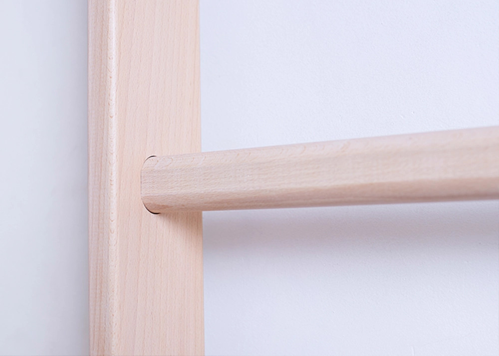 Celodrevená rebrina BenchK 100 je nenahraditeľným vybavením pre každého, kto chce posilniť väzy a šľachy, čo je potrebné pre tých, ktorí chcú športovať a majú dobrú fyzickú formu. Je vyrobená z kvalitného bukového dreva na moderných zariadeniach, ktoré zaisťujú hladký povrch dreva a dokonale prispôsobené časti rebríka. Na ochranu dreva proti oderu alebo špine počas fyzickej aktivity sú drevené prvky pokryté špeciálnym olejom. Vďaka tomuto povlaku nekĺžu na priečkach ruky a zostávajú vždy čisté. Na rebrine môžu cvičiť aj rodičia dieťaťa. Cvičenia a zábava na rebríku sú skvelými nápadmi, ako tráviť čas so svojou rodinou. Maximálna záťaž je 120 kg. Rebrík má 8 priečok, a vďaka tomu, nezaberá veľa miesta a ľahko sa zmestí aj do malej detskej izby. Na namontovanie stačí venovať iba 0,5 m2 priestoru. Farby jednotlivých drevených prvkov aj farby na obrázkoch sa môžu mierne líšiť od farieb v skutočnosti vzhľadom na povahu dreva. Napriek tomu vynakladáme osobitné úsilie, aby sme tieto rozdiely obmedzili na minimum.