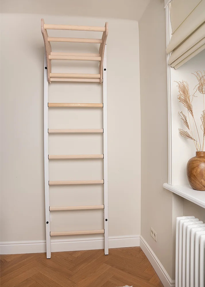 BenchK Pull up bar PB204 je drevená svetlá hrazda, je polohovateľná, takže umožňuje cvičiť rôzne svalové partie. Všetky prvky sú kvalitne vyrobené, nemajú ostré hrany ani vyčnievajúce časti. Použité pri výrobe su prírodné materiály, ktoré nespôsobujú alergické reakcie. Gymnastická hrazda je v súlade s normami PN-EN 12346: 2001, PN-EN 913: 2019-03.