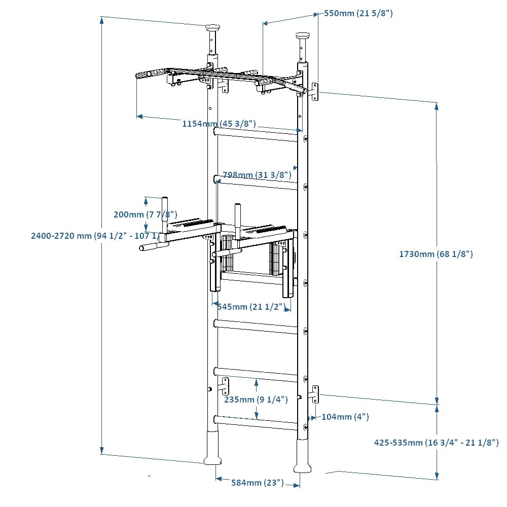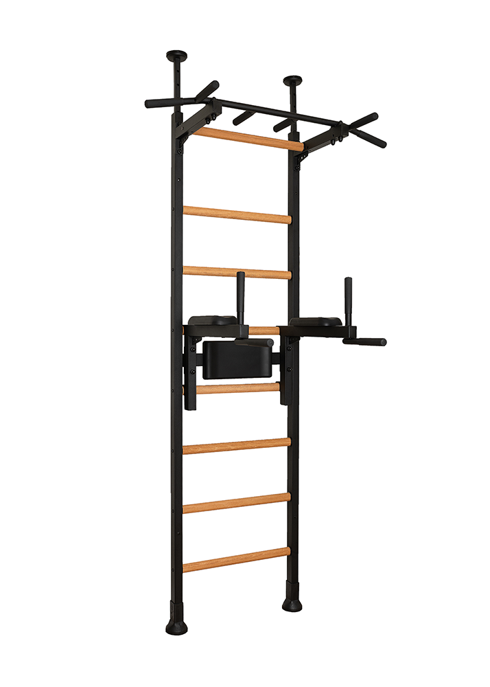 Tento model rebriny zo série BenchK 5 je vybavenie, ktoré môžete použiť na každodennú prácu s vašou fyzickou zdatnosťou. Na montáž postačuje menej ako 1 m2 plochy, vďaka čomu sa určite zmestí do každého bytu a miestnosti. Bočné kovové profily s práškovým nástrekom sú jednotné, čo výrazne zvyšuje trvanlivosť rebriny. Rebrina obsahuje 8 oválnych bukových rukoväťových priečok. Max.hmotnosť používateľa rebriny je do 150 kg. Rebrina sa môže inštalovať medzi strop a podlahu alebo priskrutkovať na stenu. Bez ohľadu na to pre ktorú variantu sa rozhodneme, inštalácia nám nebude trvať príliš dlho. Bradlá s držiakom na veľkú činku majú 4 háčiky s hrúbkou 4 mm, háčky sú vybavené plstenou podložkou, aby sa zabránilo poškriabaniu drevených priečok rebriny. Odnímateľná štruktúra bradiel Vám umožňuje ľahko meniť ich výšku. Po otočení bradiel a opätovnom zavesení na rebriny, Vám vznikne držiak na veľkú činku. Max.hmotnosť veľkej činky je 200 kg. Bradlá zahŕňajú odolné a ľahko ošetriteľné lakťové opierky vyrobené z integrovanej polyuretánovej peny a štyri protišmykové madlá. Rebriny sú určené pre domáce telesné cvičenia ale aj pre vybavenie fitness centra. Sú vhodné na zvýšenie fyzickej aktivity, posilňovanie svalov a rozvíjanie koordinácie. Ponúkajú nespočetné možností pre cvičenie. Rebriny v neposlednej rade spĺňajú aj prísne bezpečnostné normy pre gymnastické zariadenia PN-EN 12346: 2001, PN-EN 913: 2019-03 takže je možné ich používať v školách, fitkách a ostatných verejných inštitúciách.