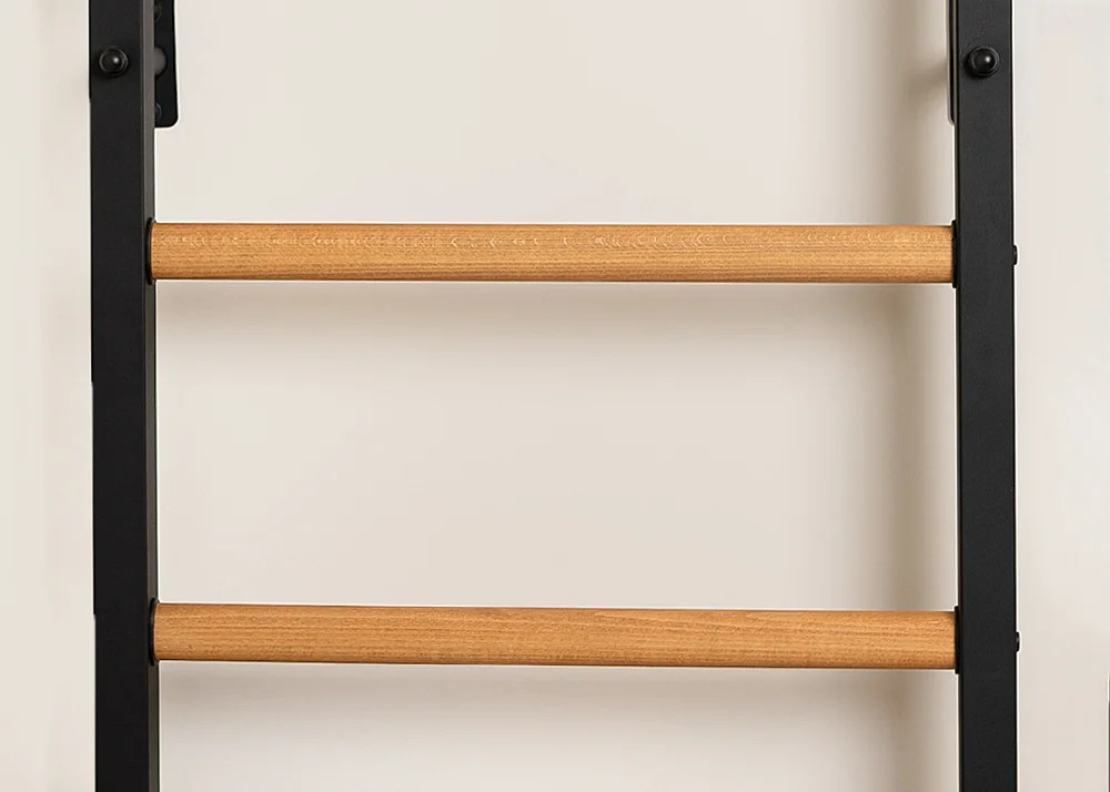 Gymnastická rebrina BenchK 721B je model, ktorý dokonale ladí so škandinávskym štýlom interiéru. Vertikálne profily (50 mm x 40 mm) sú vyrobené z vysoko kvalitného kovu,ktoré boli následné lakované komaxitovou farbou,ktorá je extrémne odolná voči poškodeniu. Priečky sú vyrobené z bukového dreva - oválneho tvaru, povrch priečok je naolejovaný kvalitným olejom, to všetko robí použitie rebriny pohodlným. V hornej časti rebriny je trvalo namontovaná kovová hrazda, ktorá je vybavená 6 rôznymi madlami, ktoré umožňujú pracovať na sile ramien a zadných svalov pomocou rôznych úchopov, napríklad širokým úchopom. Dĺžka hrazdy je 116,4 cm. Rebrina BenchK 721B bola vytvorená pre ľudí, ktorí chcú pracovať na svojej postave v pohodlí svojho domova. Maximálna hmotnosť osoby, ktorá vykonáva cvičenia, môže byť až 150 kg.