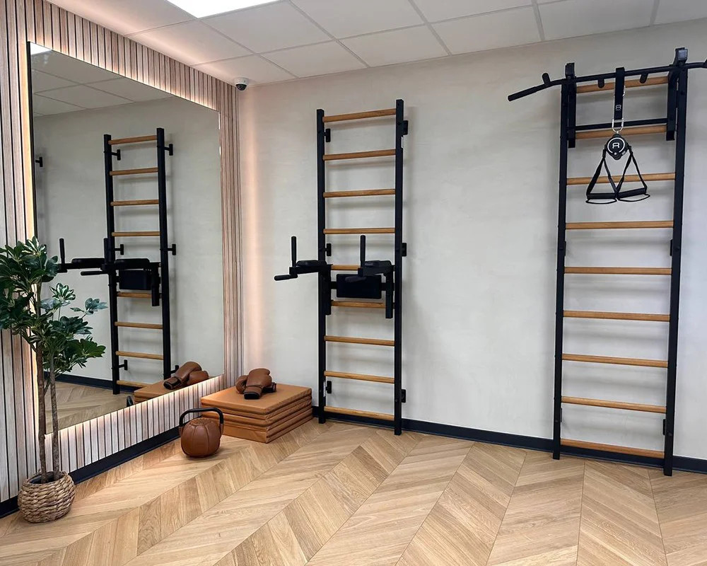 Gymnastická rebrina BenchK 310 ( Kraft ) je model, ktorý dokonale ladí so škandinávskym štýlom interiéru. Vertikálne profily (50 mm x 40 mm) sú vyrobené z vysoko kvalitného kovu,ktoré boli následné lakované komaxitovou farbou,ktorá je extrémne odolná voči poškodeniu. Priečky sú vyrobené z bukového dreva - oválneho tvaru, povrch priečok je naolejovaný kvalitným olejom, to všetko robí použitie rebriny Kraft pohodlným. V hornej časti rebriny je trvalo namontovaná kovová hrazda, ktorá je vybavená 6 rôznymi madlami, ktoré umožňujú pracovať na sile ramien a zadných svalov pomocou rôznych úchopov, napríklad širokým úchopom. Dĺžka hrazdy je 116 cm. Rebrina Kraft bola vytvorená pre ľudí, ktorí chcú pracovať na svojej postave v pohodlí svojho domova. Maximálna hmotnosť osoby, ktorá vykonáva cvičenia, môže byť až 150 kg. Rebrina Kraft Vám umožní cvičiť plnohodnotne celé telo,bez toho, aby ste zaberali veľa miesta. Jej inštalácia je veľmi jednoduchá a jej dizajn bol navrhnutý tak, aby zodpovedal súčasným trendom v dizajne interiéru bez narušenia celkového interiéru bytu. Na výber u nás nájdete rôzne kombinácie tejto modelovej rady alebo si komponenty môžete dokúpiť aj postupne. Kombinácia s inými modelmi je tiež možná nakoľko všetky rebriny majú rovnakú šírku a vzdialenosť priečok medzi sebou.